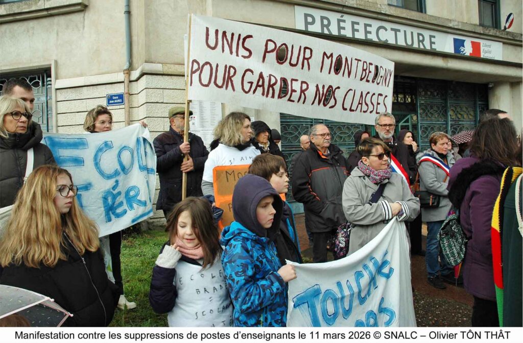Ce mercredi 11 Mars a eu lieu un rassemblement devant la préfecture de l’Allier pour protester contre l’annonce de la suppression de 11 postes dans le premier degré et la baisse des dotations horaires en collèges et lycées pour la prochaine carte scolaire. Des personnels de l’Education nationale et leurs organisations syndicales (CGT, FSU, SNALC, […]