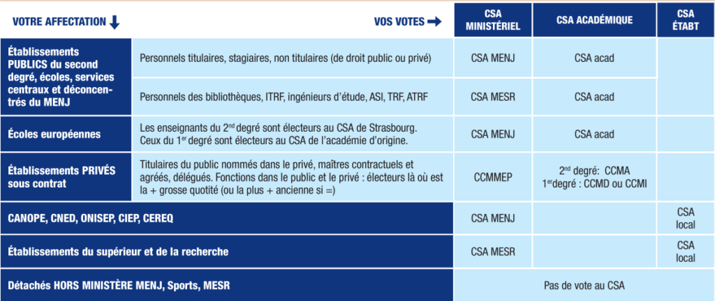 vous votez pour le Comité Social d’Administration (CSA) au niveau ministériel et au niveau local :