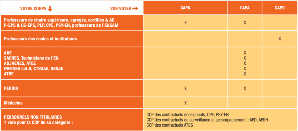 au niveau local (CAPA, CAPD, CCP) et/ou au niveau national (CAPN) :